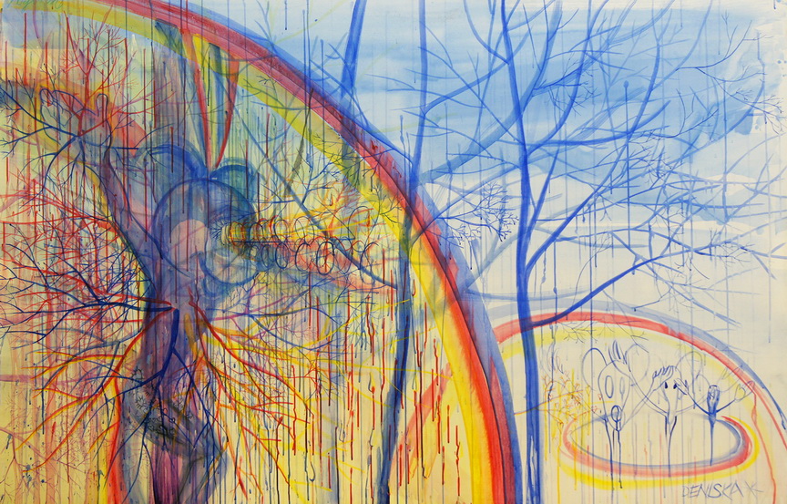 Výstava Denisy Belzové, která o svých malbách říká: „Ve své tvorbě zpracovávám dva odlišné přístupy. První vychází z reálných námětů – interiérových a exteriérových prostor, městských krajin a zákoutí. Druhá rovina mé tvorby je spontánním emotivním záznamem životní energie, pulsující organickou rostlinou, psychedelickým barevným výjevem, procesivním záznamem.“